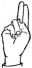 На ћирилици написано ВУКОСАВ ГАРАБИНОВИЋ састоји се из 18 слова [?]. Исписано ћириличном једноручном азбуком за глувонеме: